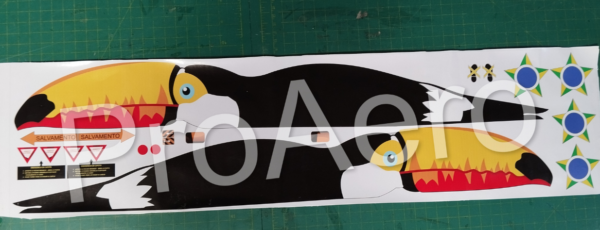Atenção: Acompanha SOMENTE o adesivo retangular, que não é recortado, o desenho do avião abaixo é somente ilustrativo para ver como fica o grafismo aplicado a fuselagem, NÃO acompanha a asa preta do pássaro que deverá ser feita pelo comprador usando vinil preto brilhante.